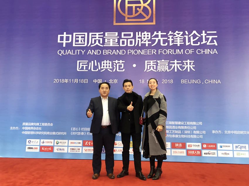 2018年11月18日,由中国商界杂志社、《匠心》栏目组、《时代影像》栏目组、中国管理科学研究院商业模式研究所联合主办;中国质量新闻网、中国商界企业家俱乐部理事会、中国商界商学院协办;北京中视启明文化传媒有限公司承办的2018“匠心典范 质赢未来”中国质量品牌先锋论坛活动在北京市雁栖湖隆重举行,来自全国各地的国家有关领导嘉宾、专家、新闻媒体以及企业代表约500人出席本次活动。
