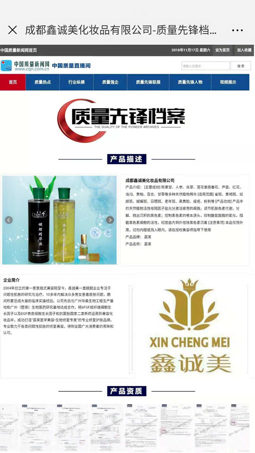 鑫诚美晨芙】系列产品,以两年入选中国质量品牌先锋并荣获:《质量先锋展示产品》。鑫诚美在建立之初就以质量为本,始终追求高品质的质量,优质的服务去对待每一位消费者。只有品质的过硬,才能有这上万份的成功案例。