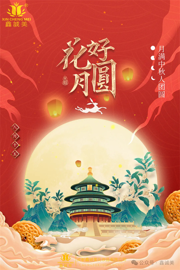 当馥郁的桂花香在空气中悠悠飘散当一轮圆月高悬天际洒下清辉,我们知晓,一年一度的中秋佳节又至。在这美好佳节,鑫诚美化妆品有限公司全体员工满怀着由衷的喜悦,向您与您的家人送上热忱、真挚的节日祝福。愿这圆满的明月,在照亮您归家路途的同时,也为您带来一整年幸福的时刻。