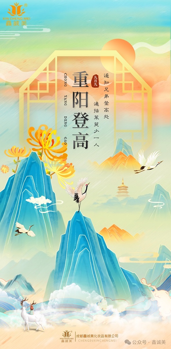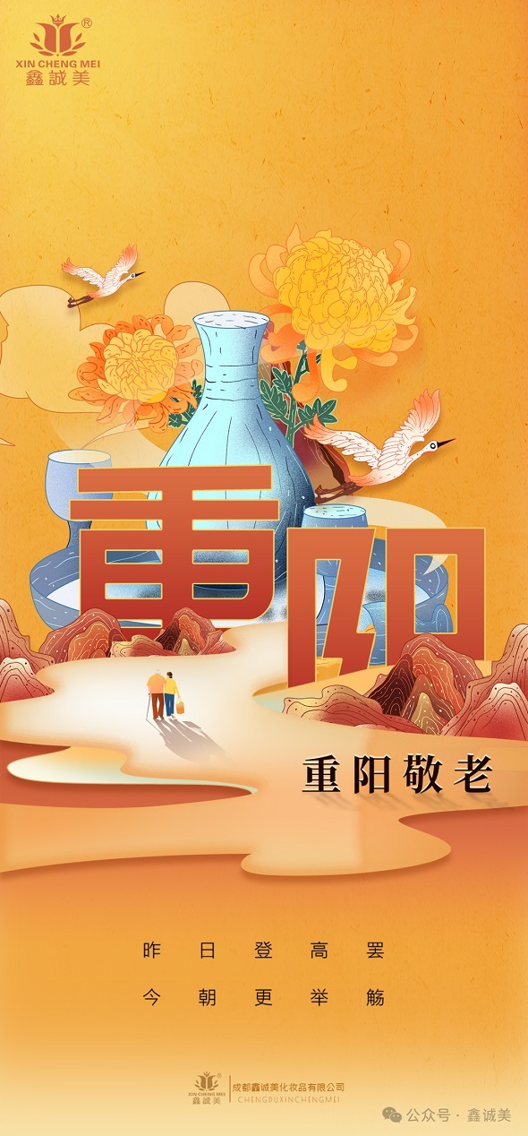 值此菊花飘香、秋高气爽的重阳佳节,鑫诚美化妆品有限公司愿天下的长辈们健康常伴您身边,幸福永驻心间!